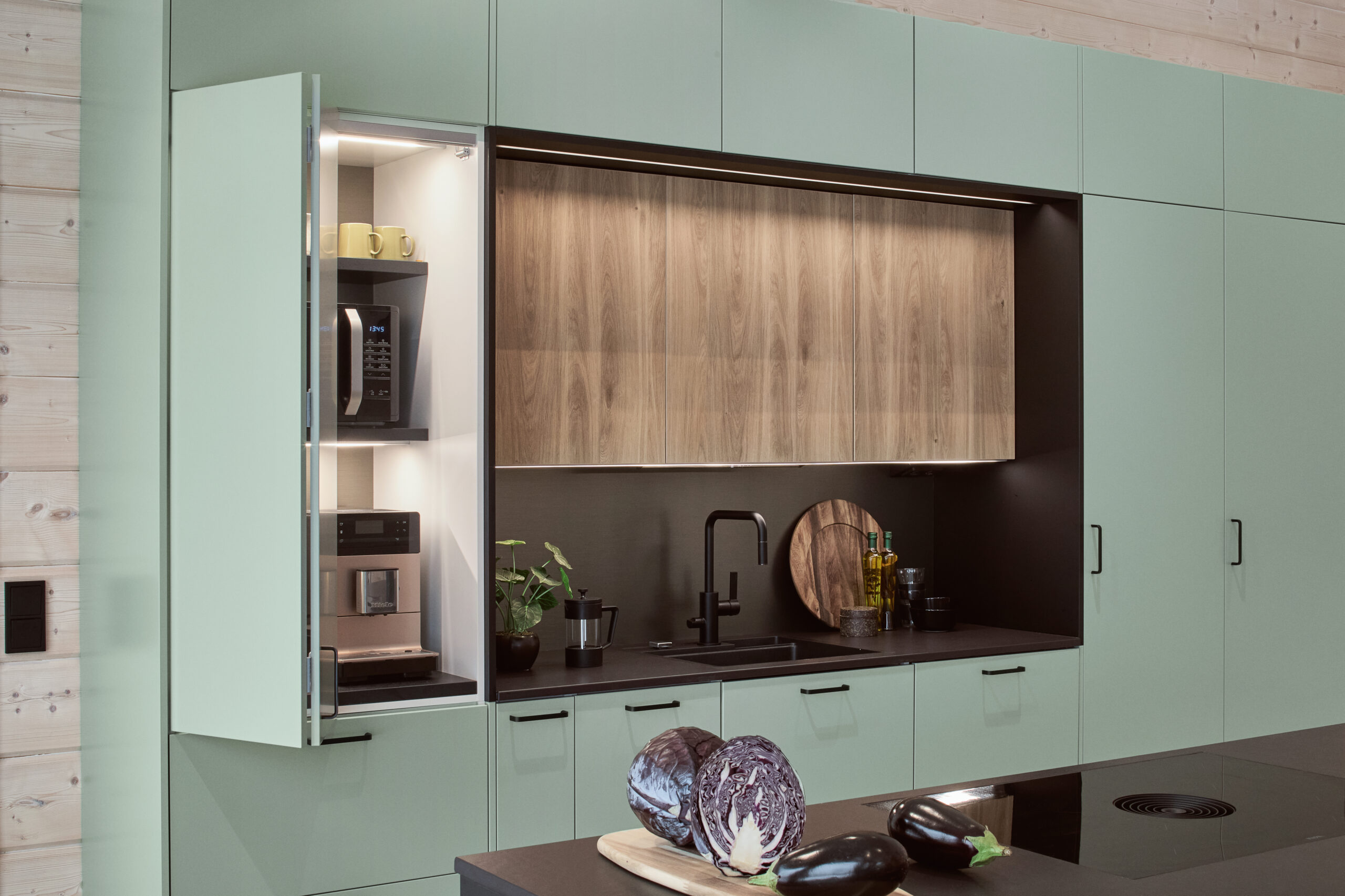 Etusivu > Tilat > Keittiöt > Kosketus vihertävä ja Aitta hunajatammi