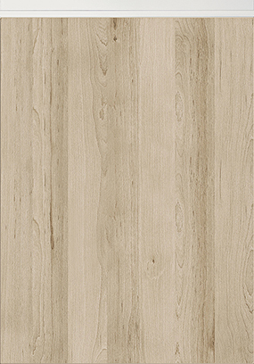 Pystysyykuvioinen melamiiniovi/mikrolaminaattiovi ovenvärisellä ABS-reunanauhalla (2mm), alumiininvärisellä listavetimellä (AL).