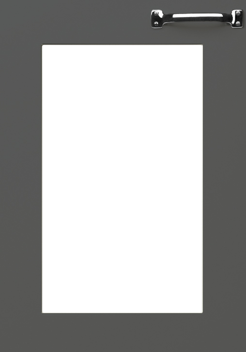Suorareunainen maalattu MDF-kehysovi lasilla.