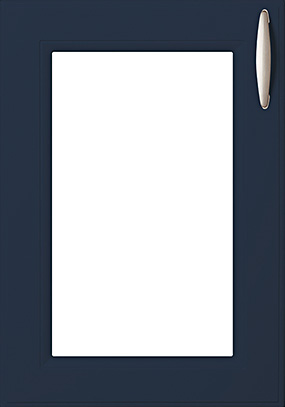Syväurainen maalattu MDF-kehysovi lasilla.